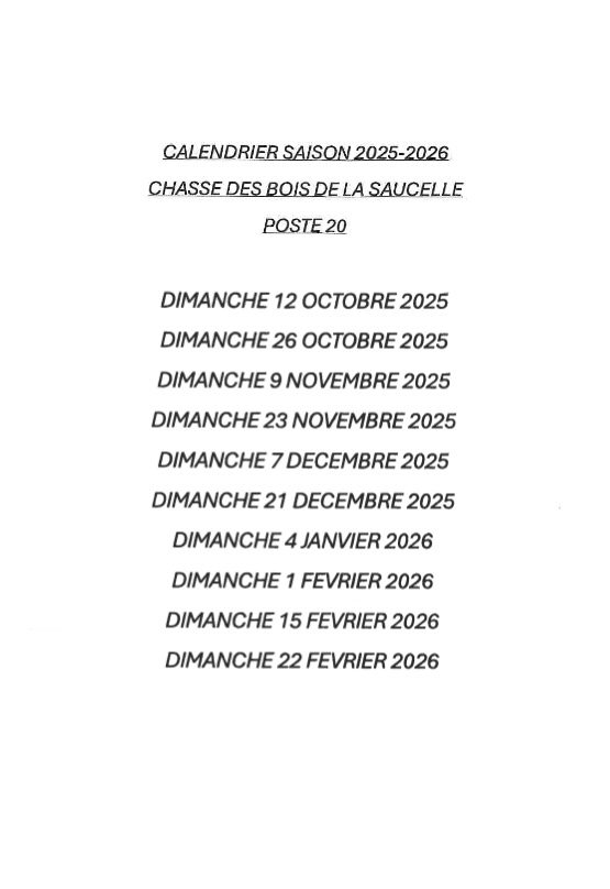 les informations calendaires suivent, avec les réserves d'usage.